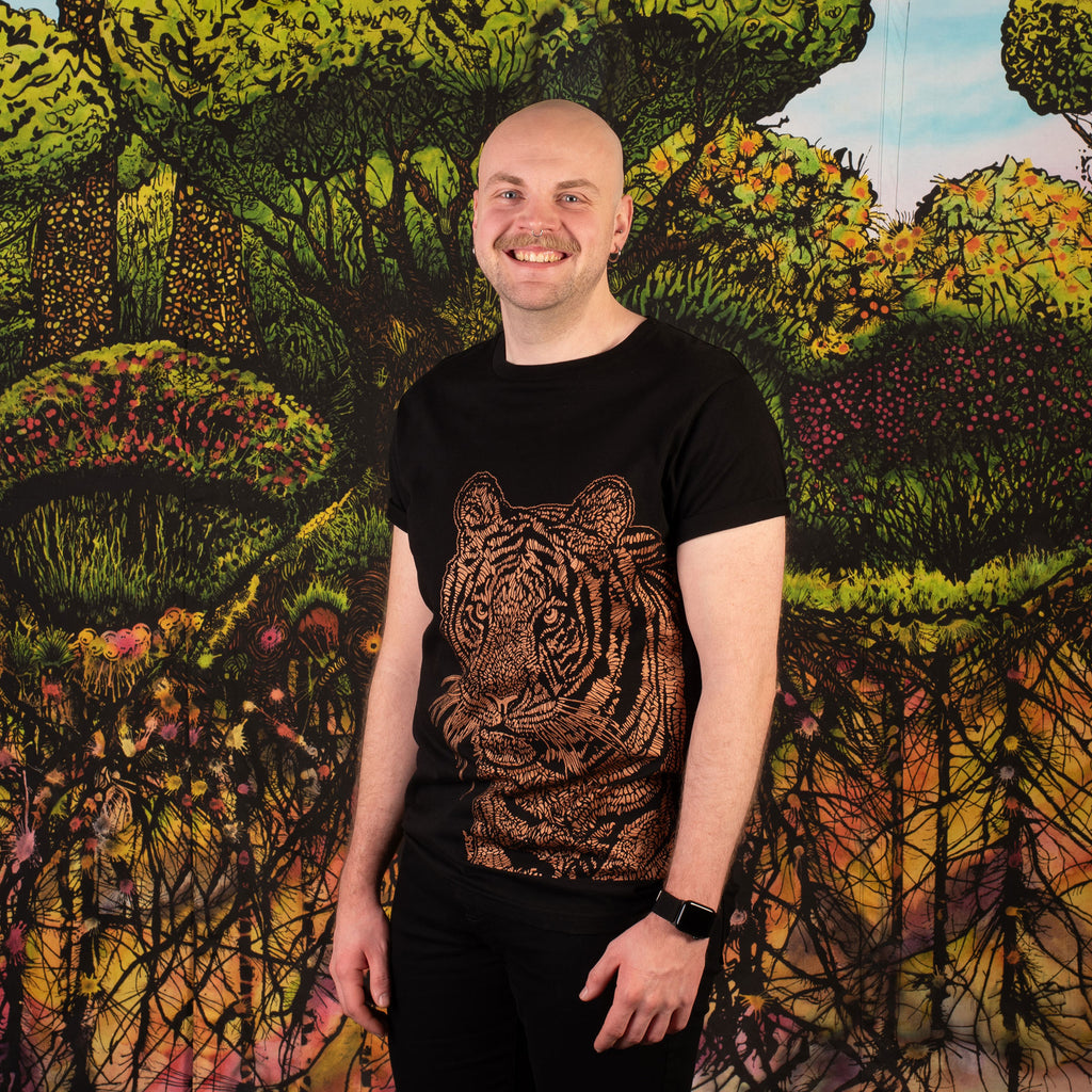 Artwork: "Totem Tiger" | T-shirt: Black | Ink: Mineral Metallic Bronze