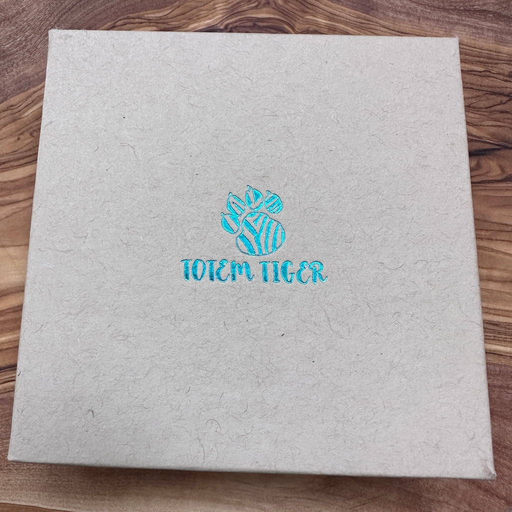 These eco-friendly earrings are inspired by the natural world, in particular the iridescence found in nature. Bright colours that shift and change, reflect and glow in the light. Think Humming birds, Jewel beetles and Morfo butterflies. It's the innate beauty of these kinds of creatures, alongside our hope for a more sustainable future, that has formed the inspiration & process we use to make these eco-friendly, wooden earrings for our design label Totem Tiger.